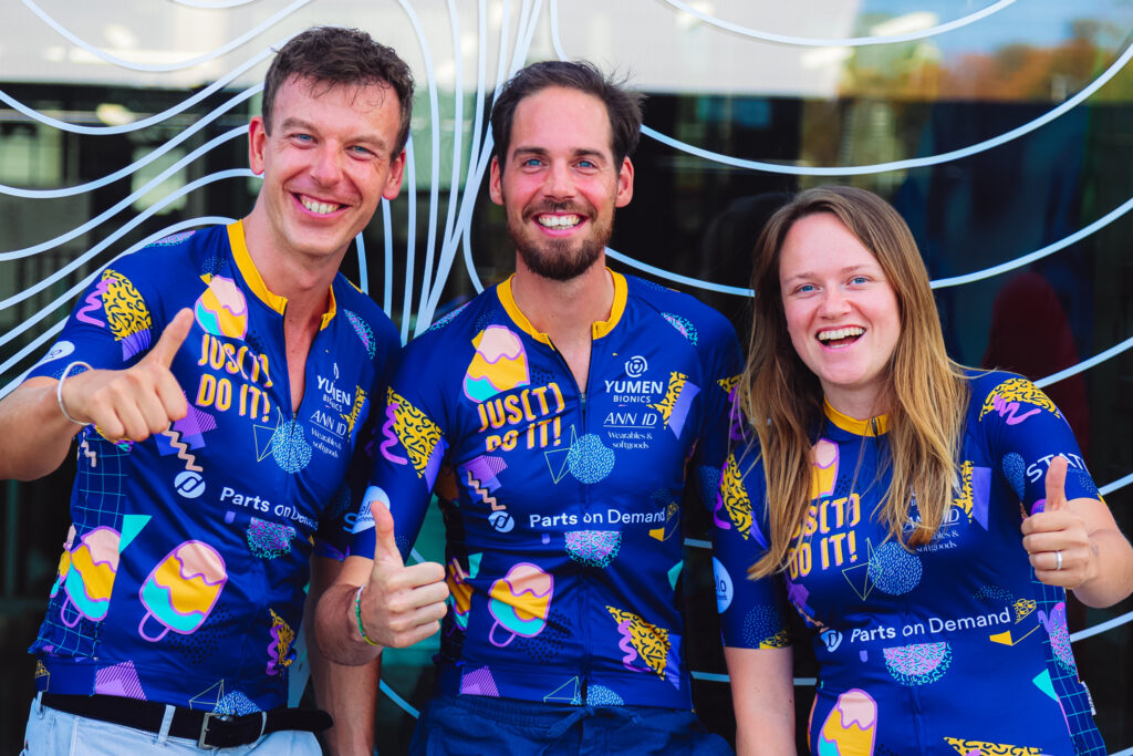 Die Projektingenieurin Jolinda Horstik von Yumen Bionics war selbst nicht mit dem Fahrrad unterwegs und konnte uns über die Fortschritte des Pilotprojekts mit den Exoskeletten informieren, während wir warteten. “Wir haben jetzt fünf Pionieren ein Exoskelett zur Verfügung gestellt”. Sie lächelt breit über unseren fragenden Blick auf das Wort Pioniere. “Ja, Pioniere, so nennen wir unser Testpanel”, lacht sie. “Das Pilotprojekt läuft neun Monate und in dieser Zeit sorgen wir dafür, dass die Pioniere nicht nur praktische Handlungen mit dem Exoskelett ausführen können, sondern auch ihre Hobbys. Das erste, was wir sie bei der Einführung fragen, ist, was sie gerne tun würden. Und das reicht von Fotografie über Klavierspielen bis hin zu Schach oder Spielen.