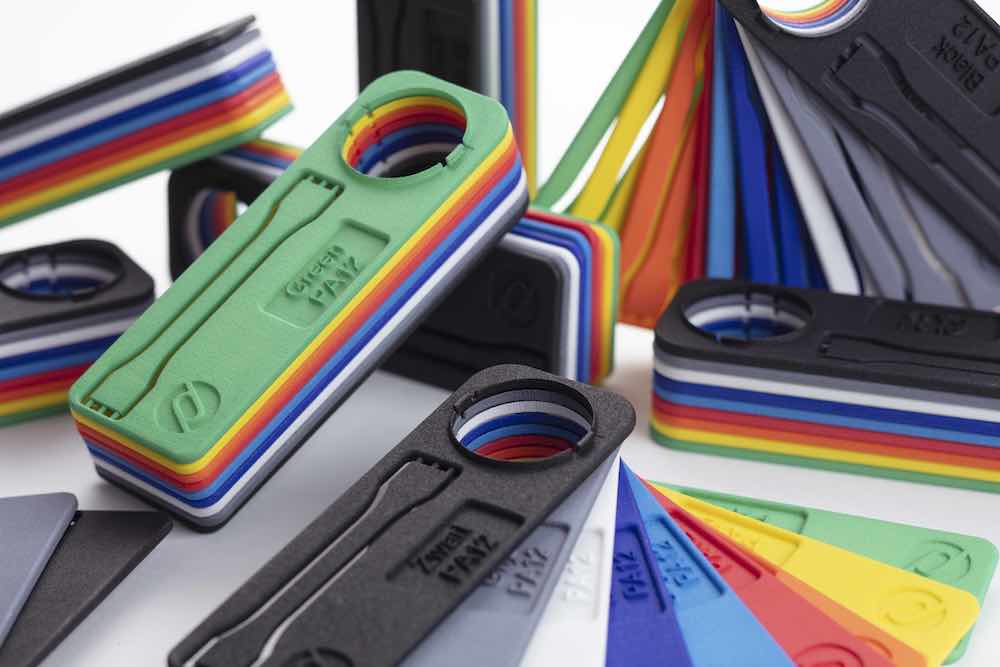 Coloring is a post-processing step in our SLS printing process. Our white PA12 material and PA11 Natural material can be dyed in many colors, including a certified food blue.