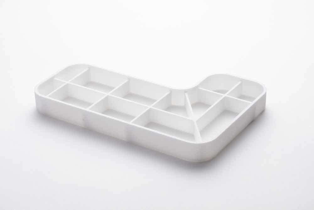 Large parts are prone to uneven cooling due to their big surface areas. This may result in unpredictable warping. This issue is particularly prevalent in surfaces with 2 long axes and 1 short axis (e.g., a cutting board). To eliminate this, you can create cut-outs to reduce the amount of heat generated on the individual part. Additionally, you can add ribs or contours to the part. These will make the part stiffer, which helps to prevent warping.