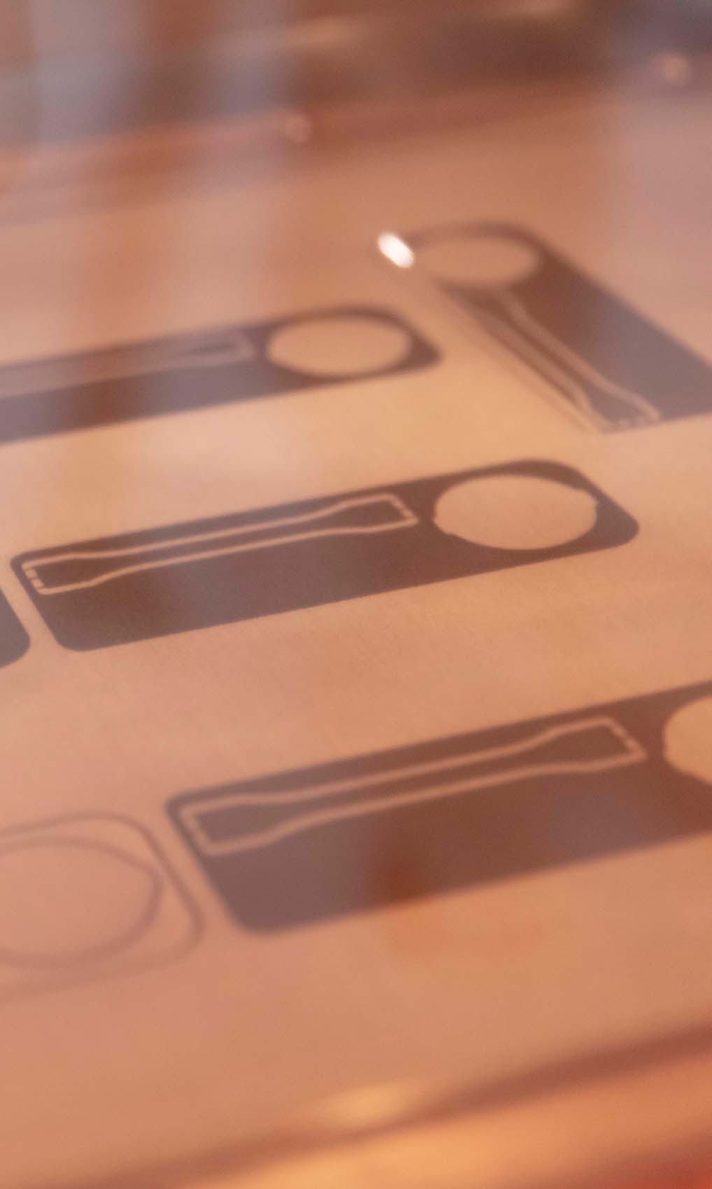 We gebruiken vooral Nylon PA11 of PA12 en carbonversterkt PA11. SLS werkt standaard met een laagopbouw van 0,1 mm en door het matte uiterlijk van de onderdelen is er bij het ruwe product een relatief geringe zichtbare laagvertekening.