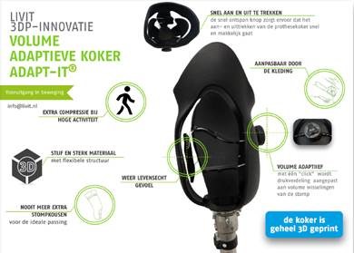 De adaptieve prothese bevindt zich op dit moment nog in de testfase. “We werken nu met testklanten om een evidence based onderbouwing te maken. Dan kunnen we hem bij TNO aanbieden voor de keuring en dan is het prototype-af. Dan kunnen we veel sneller een nieuwe prothese maken, waar we nu zes dagen aan het tekenen zijn zal dat straks binnen twee uurtjes gebeurd zijn.”