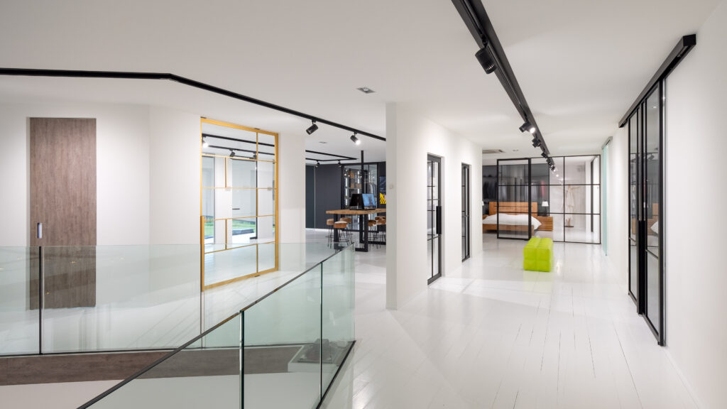 Het is van oorsprong een echt familiebedrijf, vertelt Koen. In 2020 werden beide bedrijven aangekocht door de Theuma groep. “Mijn ouders zijn in 1995 gestart met het bedrijf en sinds de officiële opstart van 1 april in dat jaar zijn we in dit pand gevestigd.” Een pand met een prachtige uitstraling op een zichtlocatie naast de A13, waar je op afspraak al het moois kunt bewonderen dat de bedrijven te bieden hebben. “We leveren vanuit hier rechtstreeks aan klanten in de omtrek, en daarnaast via een groot resellernetwerk in de Benelux en Duitsland. Onze doelgroep vandaag is de residentiële markt, waarbij zo’n 99% van de leveringen naar consumenten gaan. In de toekomst willen we onze focus ook verleggen richting high-end projecten en kantoren.”