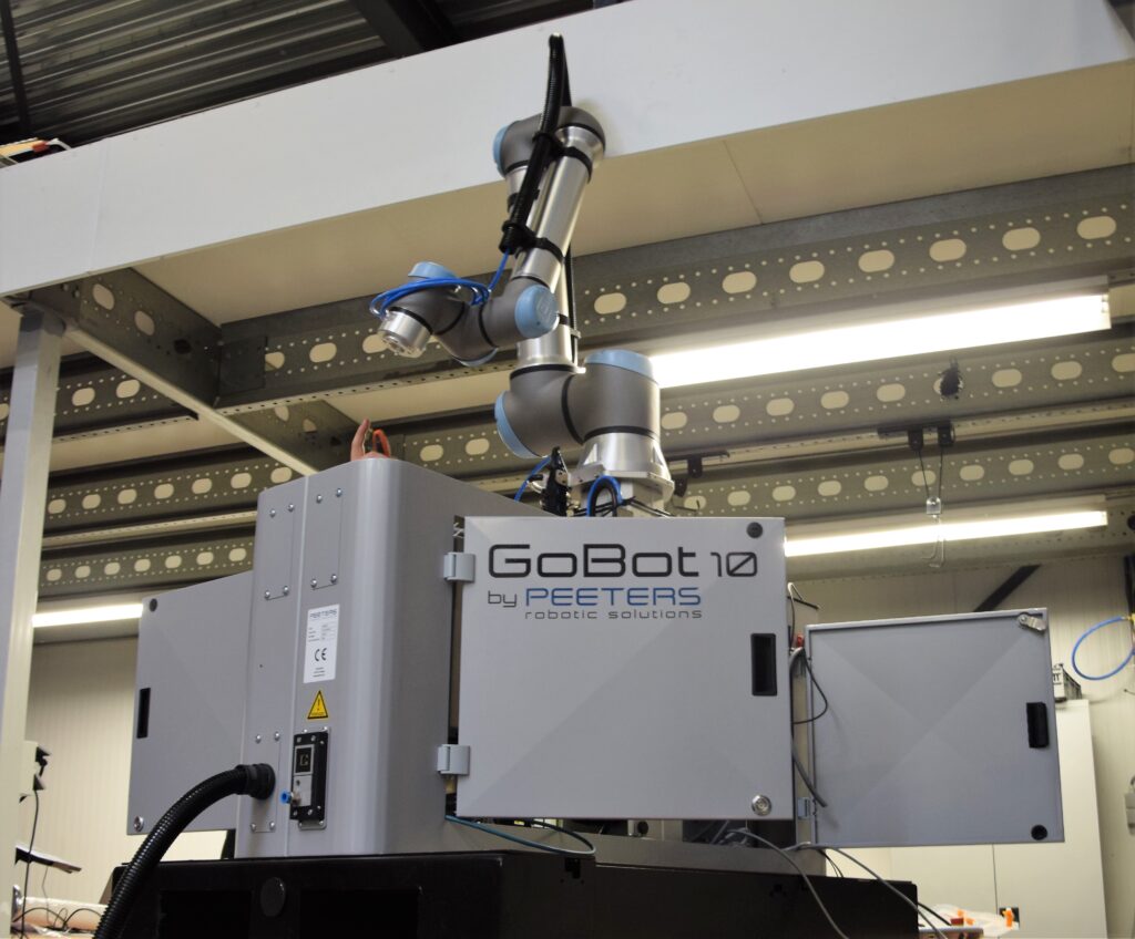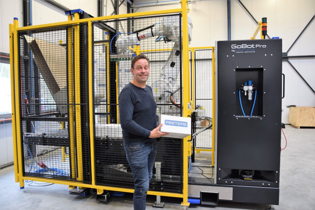 Of de vraag nu groot of klein is, Peeters denkt mee met de klant om te zien of en hoe iets het beste geautomatiseerd kan worden en of het zinnig is. We werken met bekende robotfabrikanten zoals ABB, Fanuc en UR “We kijken hoe we een probleem op kunnen lossen door het automatiseren van bepaalde handelingen. En hoe dat het slimste kan, bijvoorbeeld door wisselgrijpers van 3D-geprinte onderdelen bij een robotarm. Onder andere voor de GoBot10 en de GoBotPro Palletise Solution. Dat zijn de door Peeters ontwikkelde mobiele palletiseeroplossingen die heel eenvoudig en veilig toe te voegen zijn aan bestaande productielijnen. Plug & Play.” Peeters vertelt over een project met een multimovesysteem waarbij 3 robots op 1 besturing zijn aangesloten. En over een vraag waar vanaf een lift op verschillende niveaus gestapeld moest worden. “Daar kwamen wij met een oplossing waar nog niemand aan gedacht bleek te hebben en die nu wordt uitgevoerd.”
